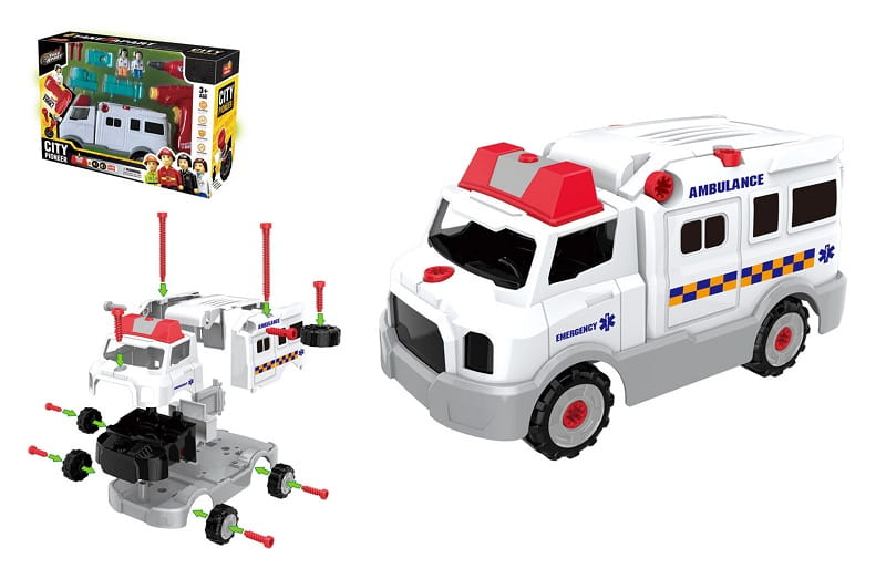 Rozborka záchranného vozu je ideální hračka pro malé kutily. Tento set rozvíjí kreativitu, logické myšlení a manuální dovednosti. Součástí sady je mnoho dílů, například kola, karoserie, šrouby.